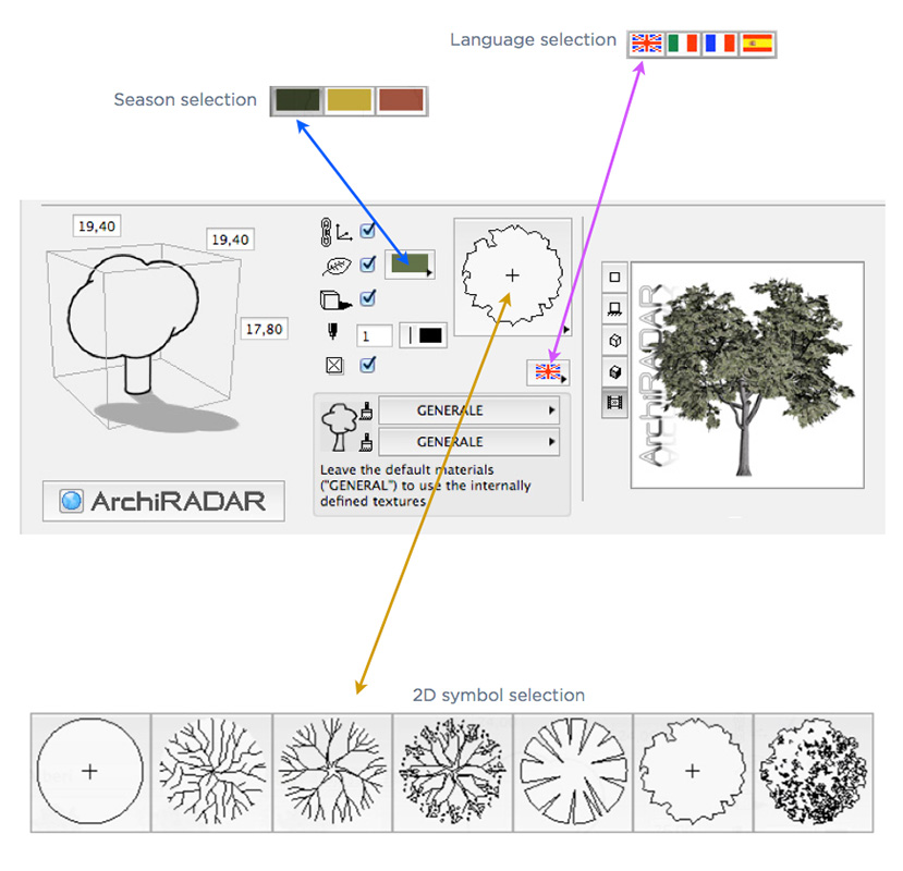 In addiction to that, for each species there is a seventh object called "Random Tree": it's a useful tool that, with a simple click, adds to the scene a random tree in order to avoid repetitions.