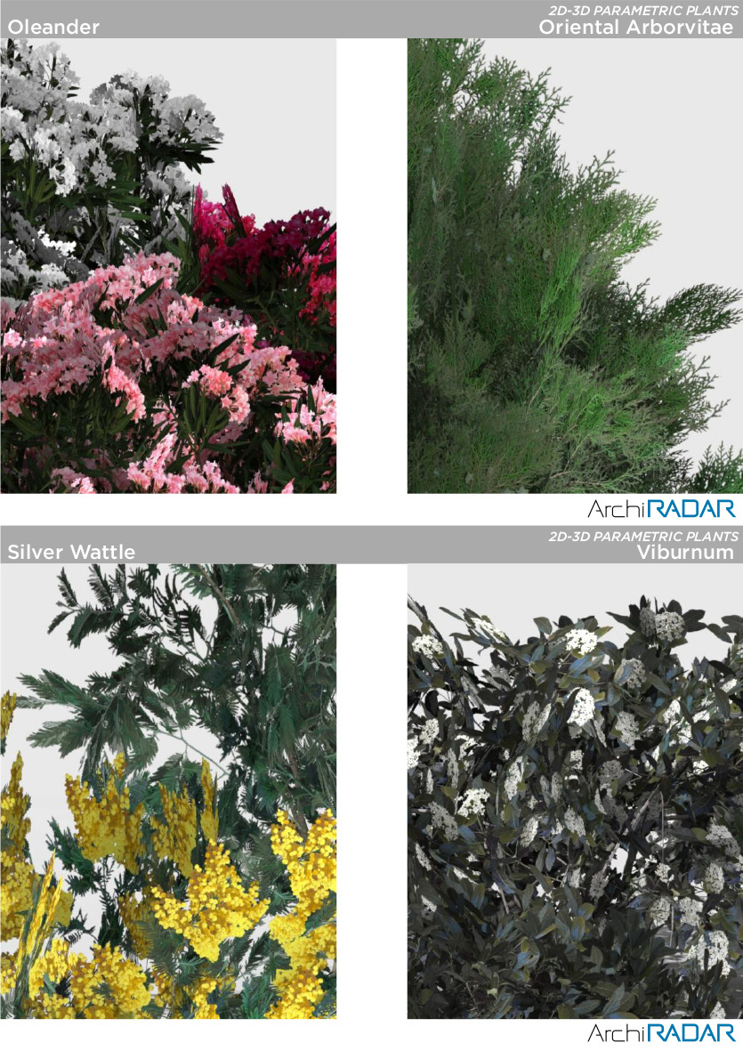 15 3D models of several plants, compatibles with ArchiCAD 16 or higher and CineRender.