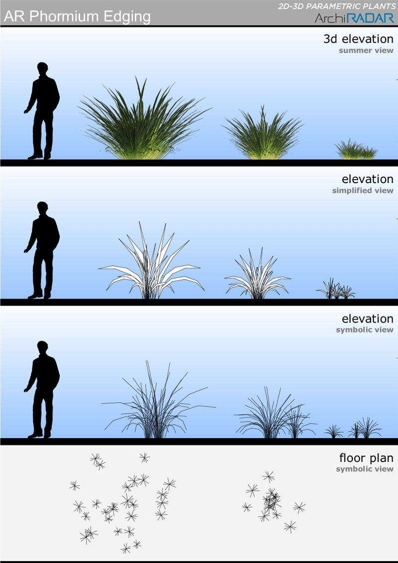 The objects are made with a low polygon quantity, they have a real growing factor according to the size and a corresponding symbolic view in elevation.