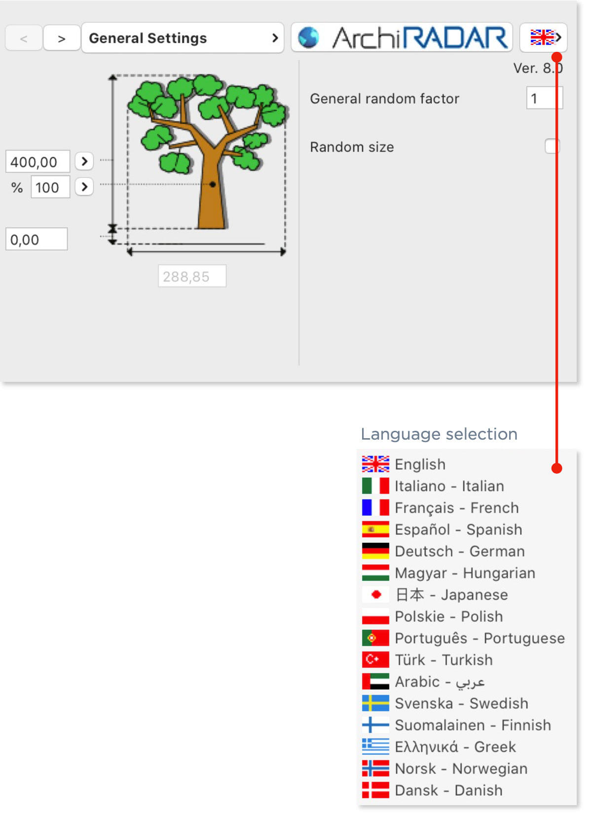 Plants always different from one another. Possibility to choose between various symbols in elevation corresponding to the real geometry of the plant.