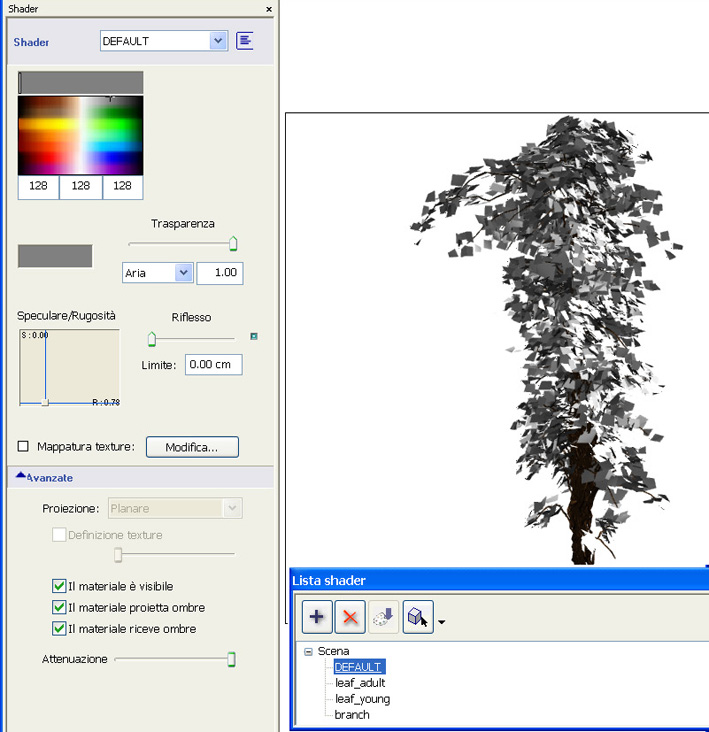 Non ci rimane che andare a selezionare il materiale Leaf_Adult e cliccare sul pulsante Modifica. Nella nuova finestra che si apre cliccate sul pulsante Aggiungi e selezionate la texture EFEU1 impostando i parametri come mostrato nella figura sottostante: