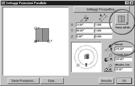 Controlliamo tutto nel 3D, facendo anche delle sezioni, se necessario, e quando il risultato appare soddisfacente passiamo alla registrazione: impostiamo una vista assonometrica, tipo "pianta dall'alto", con azimuth a 270° e, tenendo attiva la vista 3D, apriamo il menu "Archivio" per richiamare la voce "Oggetti GDL/Salva Modello 3D come...".