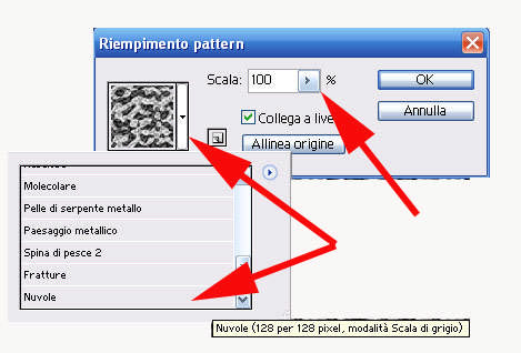 Scegliamo il pattern che preferiamo (in questo caso useremo le nuvole), modifichiamo il valore della scala e clicchiamo su ok.