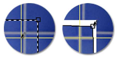 Trascino le maniglie, fino a far coincidere le fughe delle piastrelle con le linee della griglia. Nel corso di questa operazione non è possibile cambiare strumento né utilizzare le palette (es. Navigatore), ma si possono comunque utilizzare vari comandi di spostamento e di zoom, sia da menu che da tastiera (comodo il "panning" attivato semplicemente dalla barra spaziatrice, ma anche lo zoom ottenuto con Alt e la rotella del mouse).
