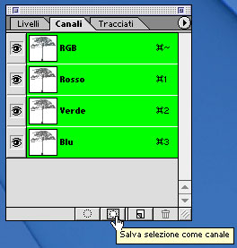 STEP 4: nella palette canali selezionate l'icona salva selezione come canale: