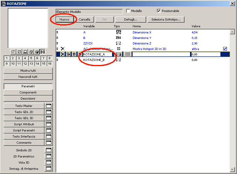 Adesso procediamo con la stessa procedura che abbiamo usato nella finestra 2d: