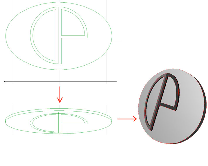 E ricostruiamo il nostro logo con gli strumenti della palette di ArchiForma (la possiamo visualizzare facendo click sul menu Extra-ArchiForma-Apri Palette ArchiForma) perché, come ArchiRotate, anche questo Add-on ruota solo gli elementi che vengono creati con ArchiForma.