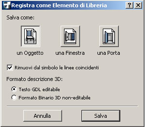 Adesso andiamo direttamente sul menu “Archivio – Oggetti GDL – Salva Modello 3D come…” e lo salviamo come oggetto con “Testo GDL editabile”