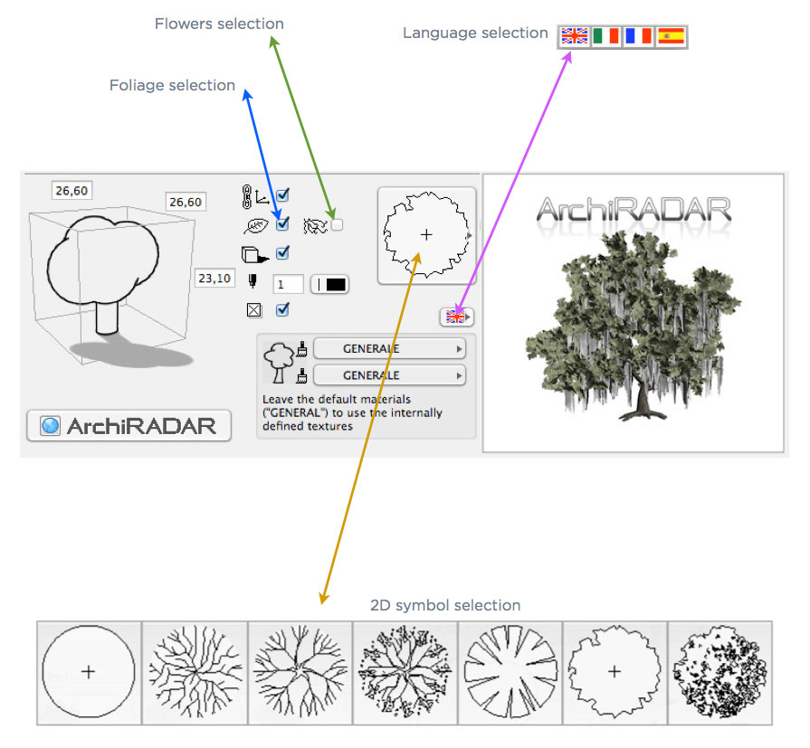 16 Modelli 3D di alberi diversi, in formato GSM, compatibili con ArchiCAD 16 o superiore.