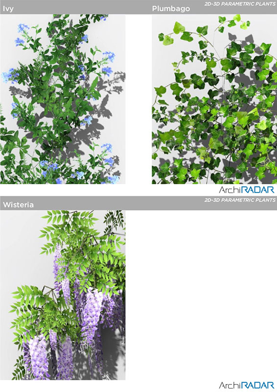 12 Modelli 3D di piante diverse, compatibili con ArchiCAD 16 o superiore e ottimizzate per CineRender.