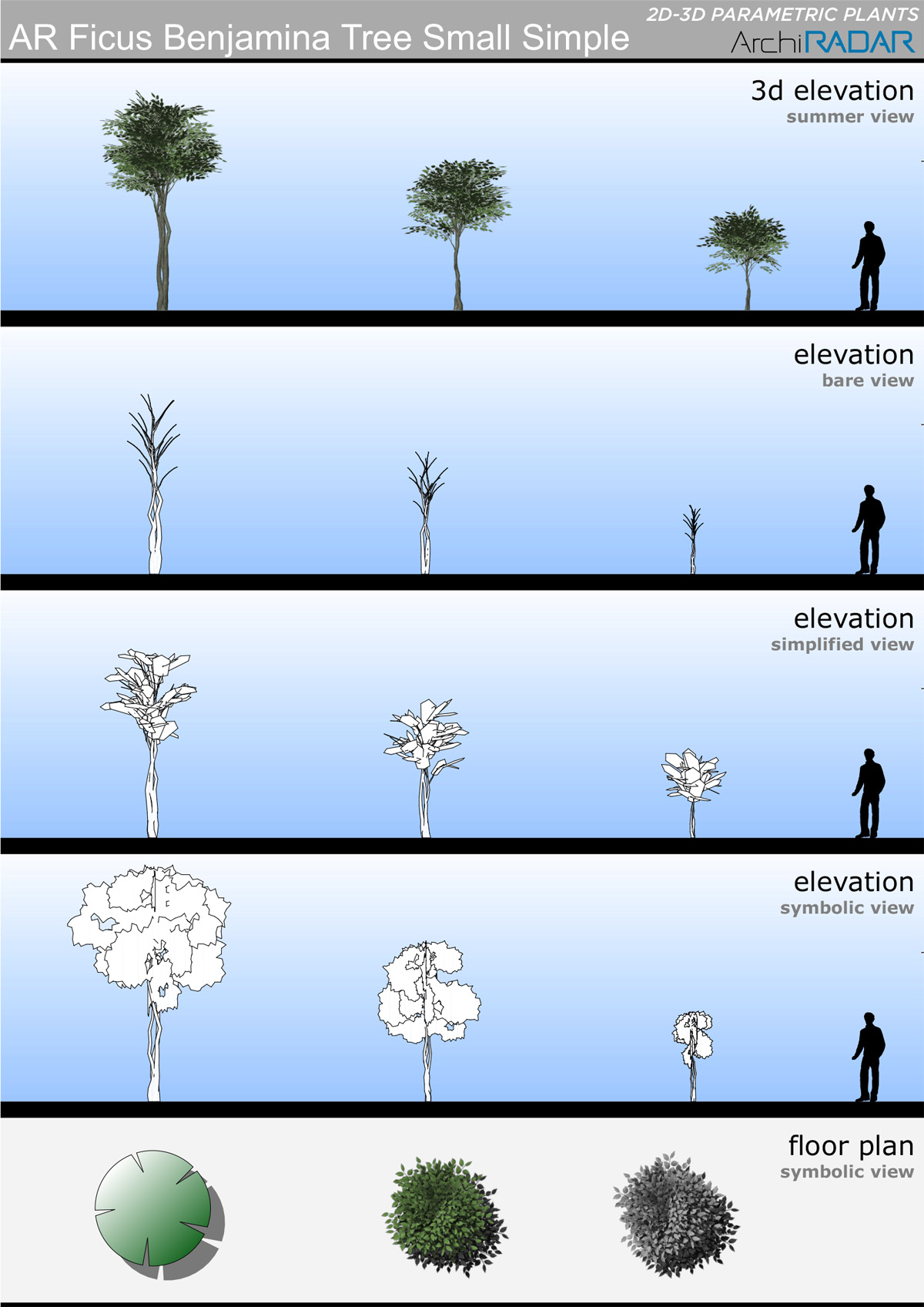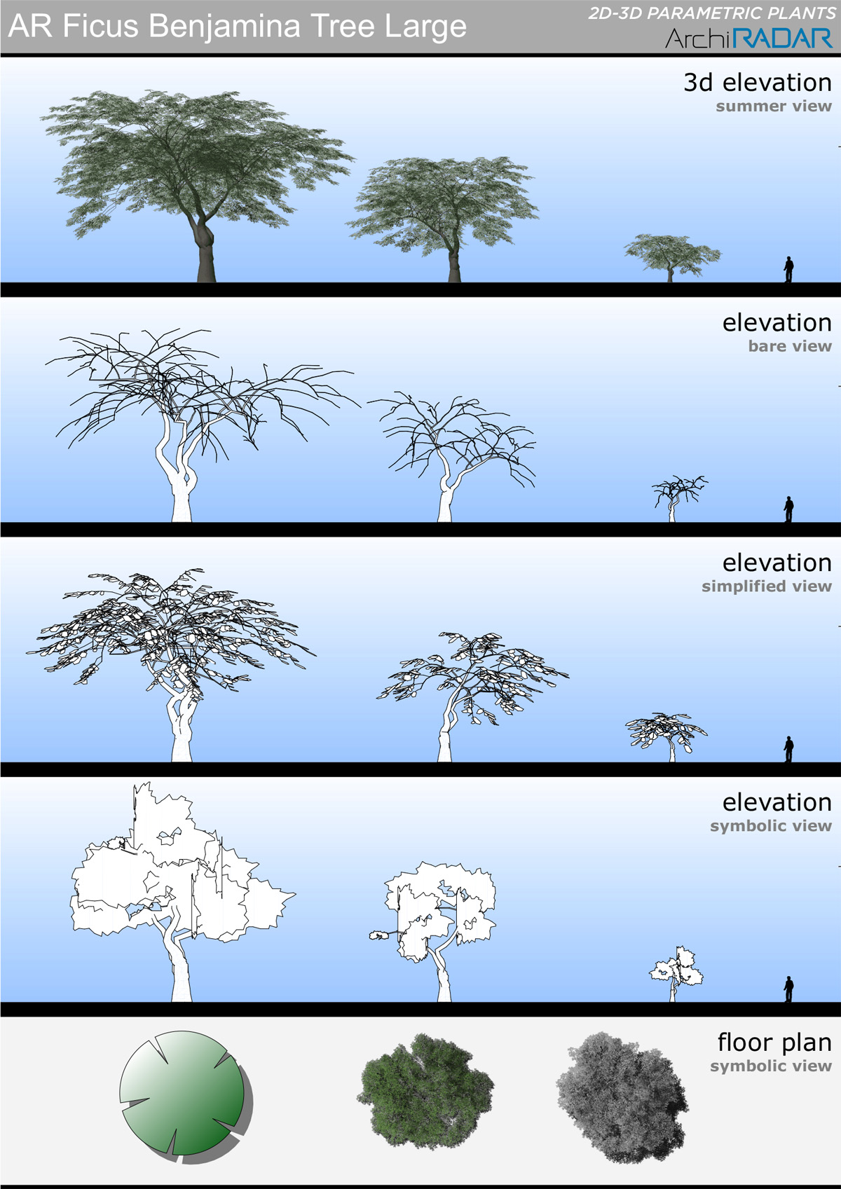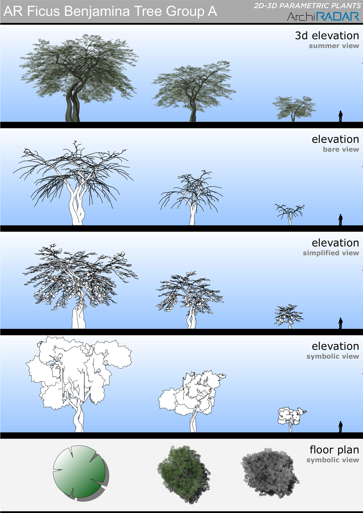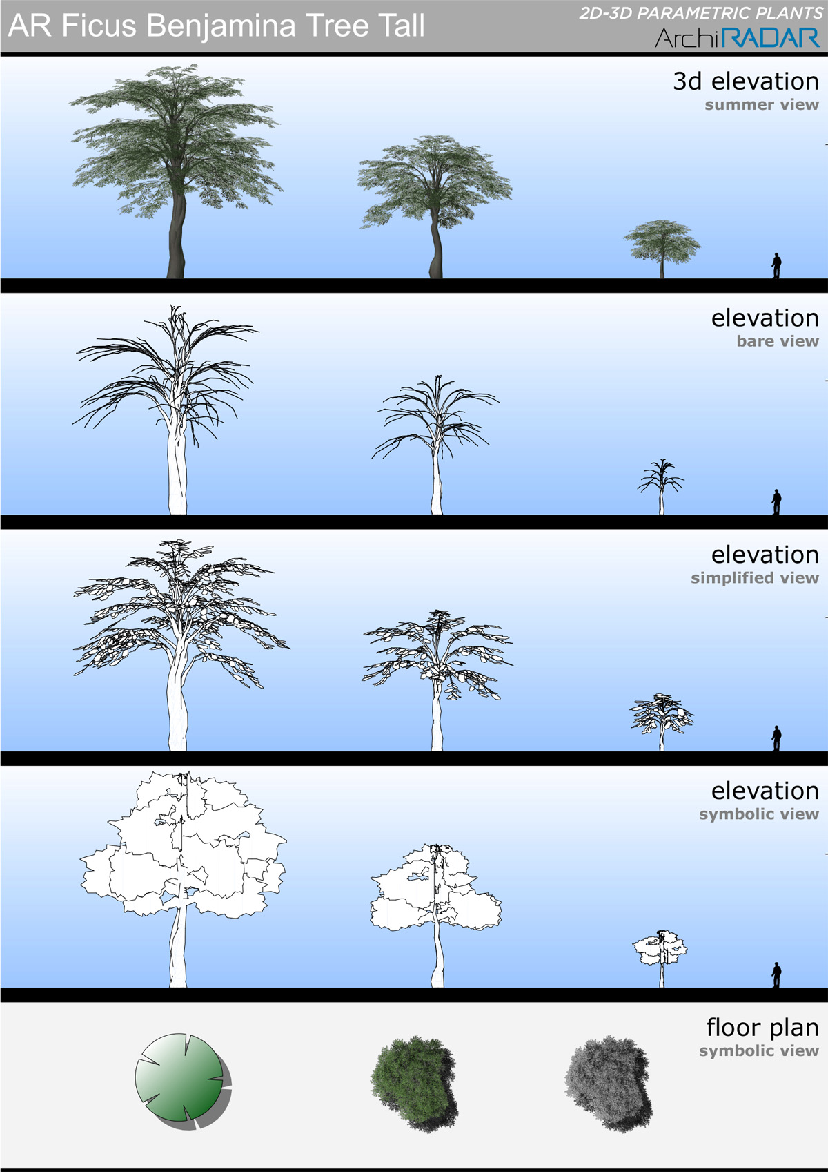 25 Modelli 3D di alberi diversi, compatibili con ArchiCAD 16 o superiore e ottimizzate per CineRender.