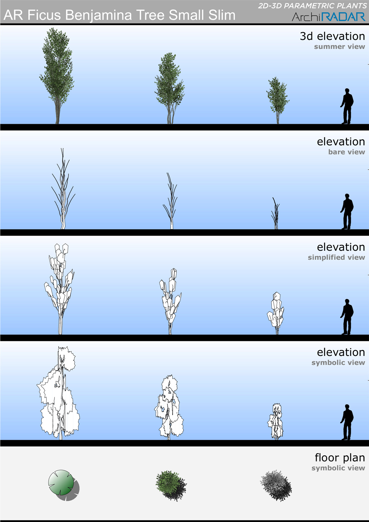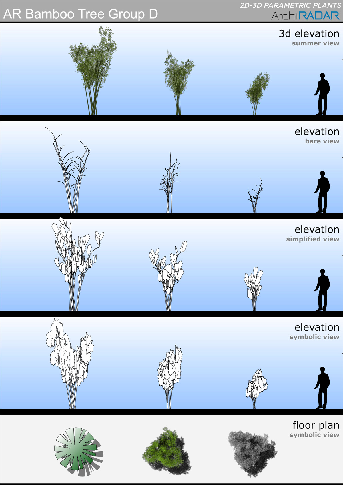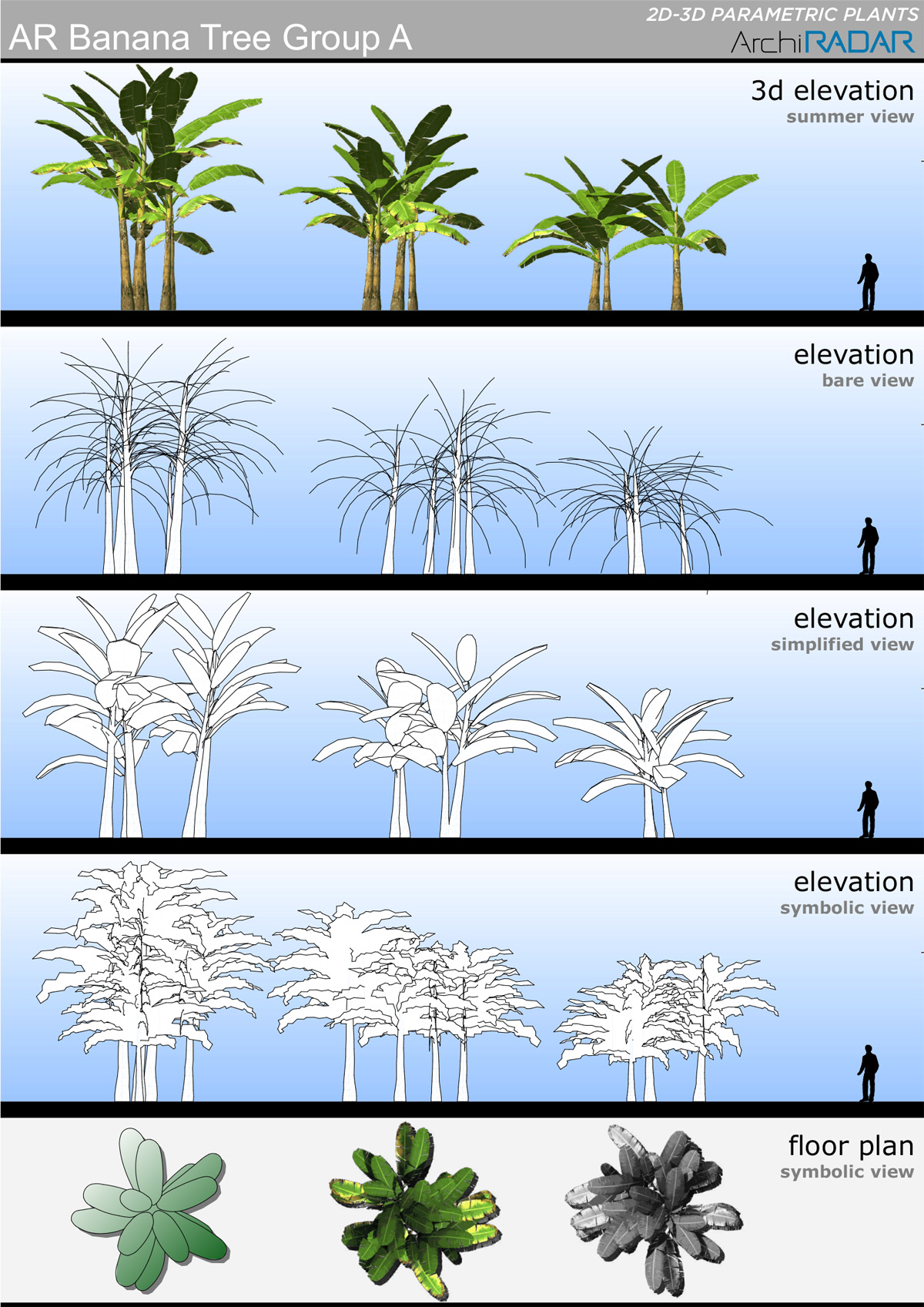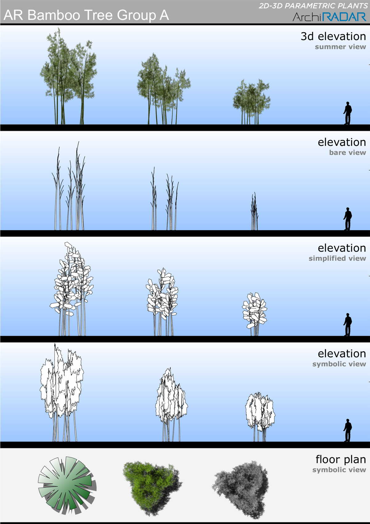 25 Modelli 3D di alberi diversi, compatibili con ArchiCAD 16 o superiore e ottimizzate per CineRender.
