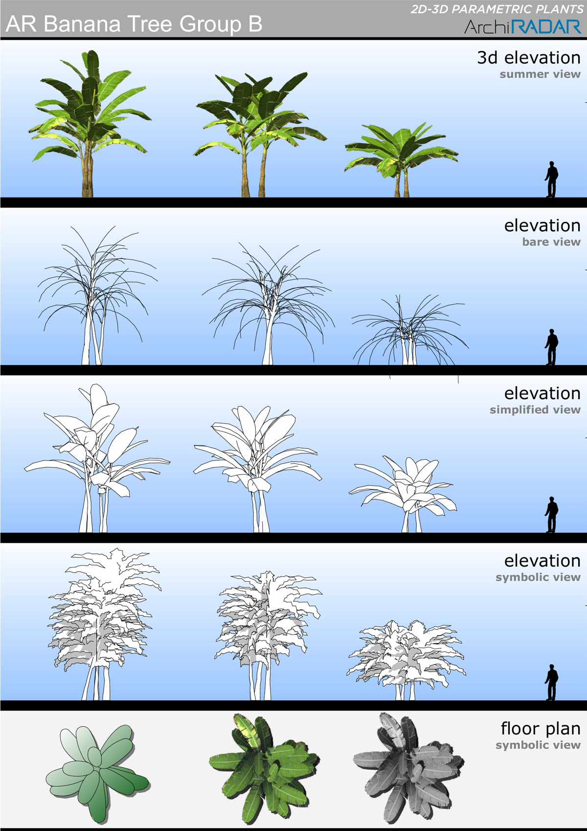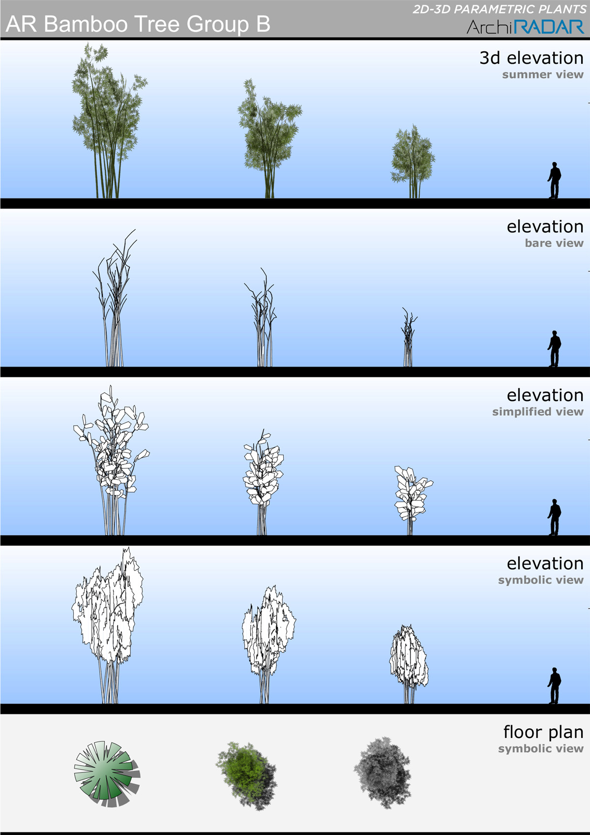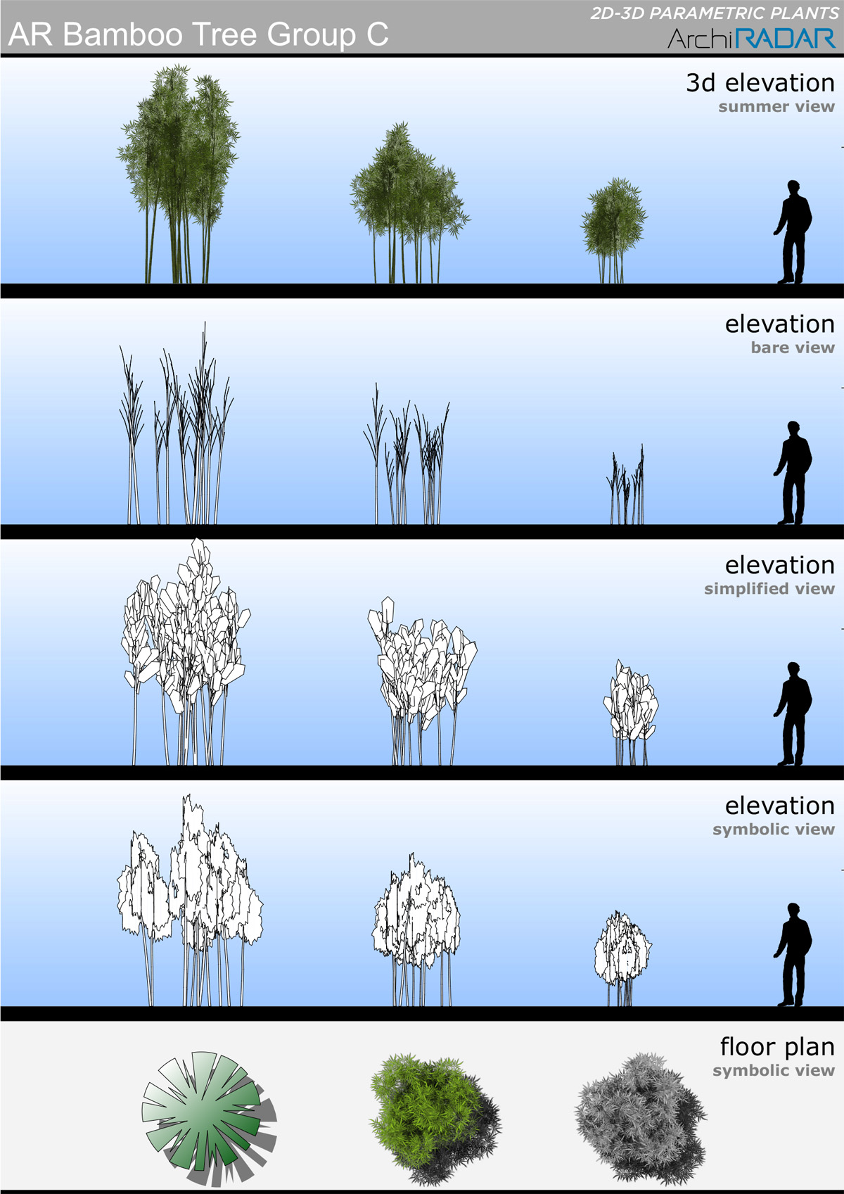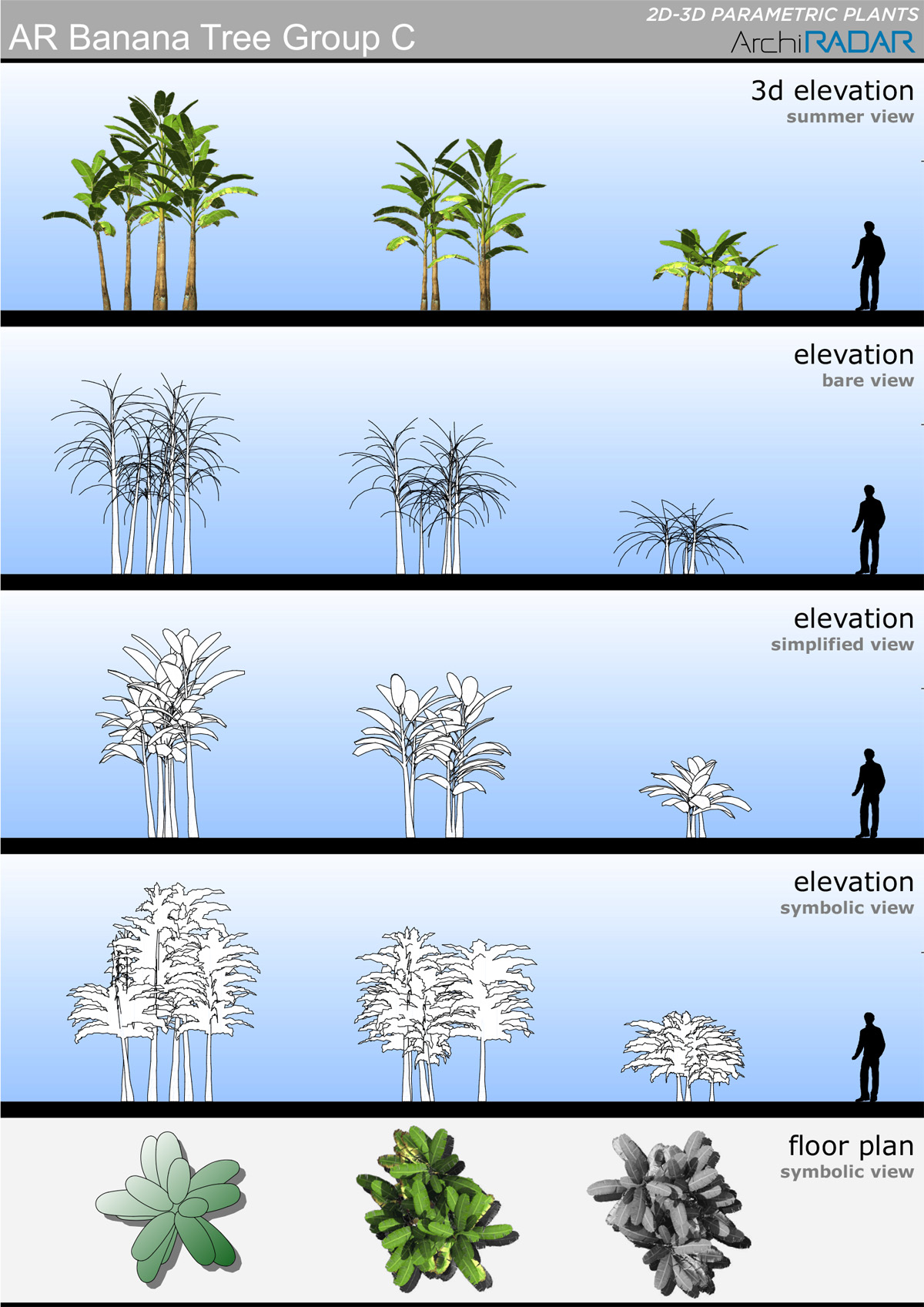 25 Modelli 3D di alberi diversi, compatibili con ArchiCAD 16 o superiore e ottimizzate per CineRender.
