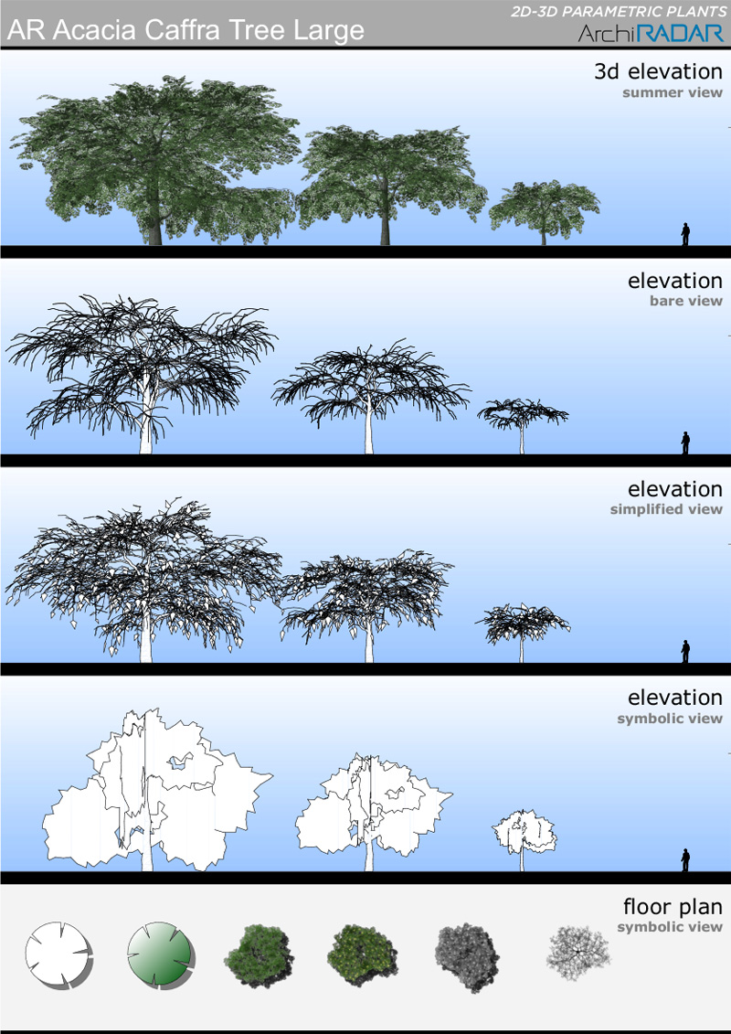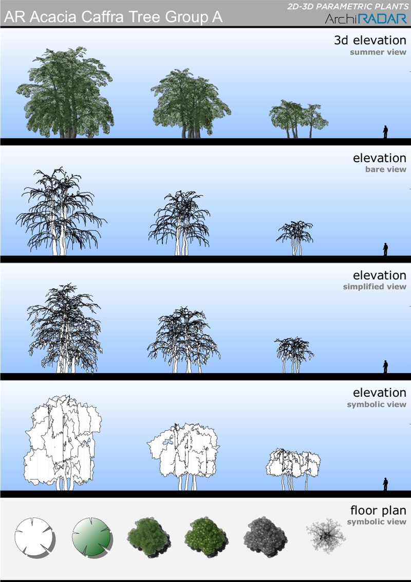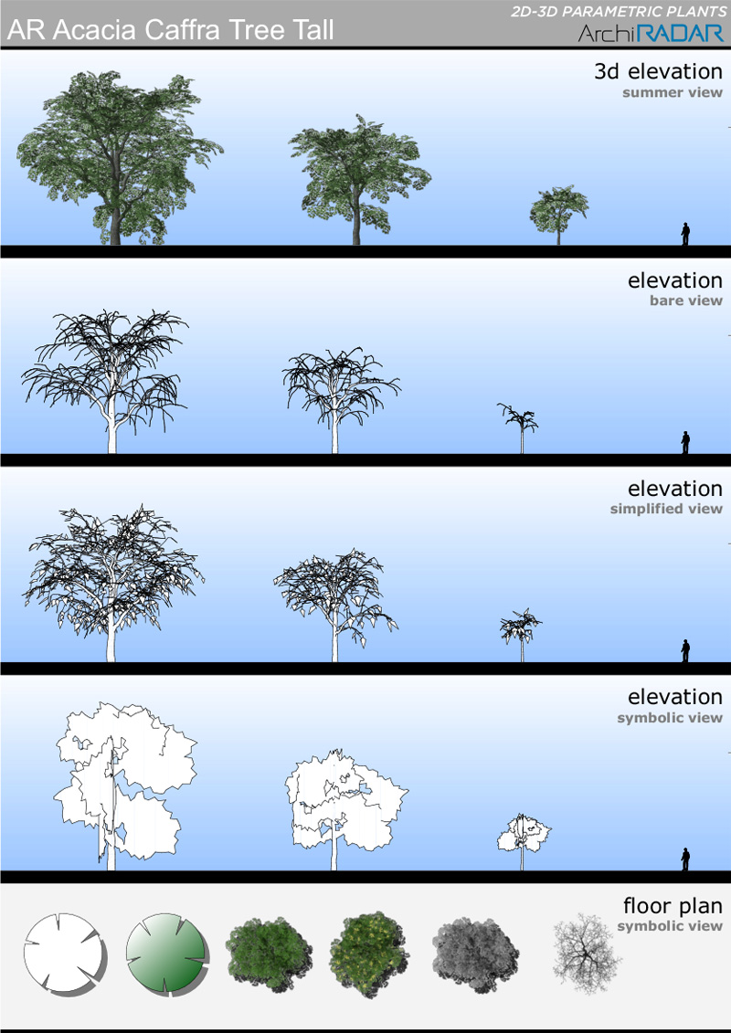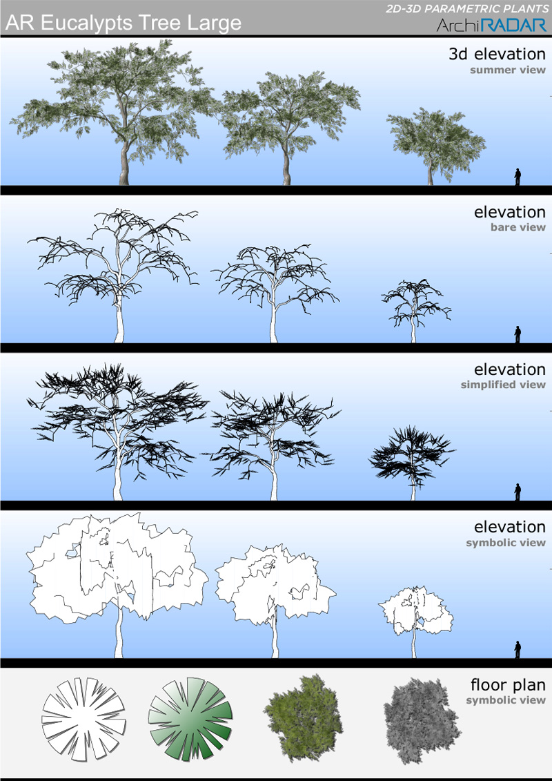 Opzioni disponibili all'interno degli oggetti:- Fattore di crescita reale- Vista simbolica in prospetto e sezione- Simbolo 2D con ombre- Simbolo 2D realistico- Livelli di dettaglio 3D- Opzione vento nei filmati- Stagioni (non per i sempreverdi)