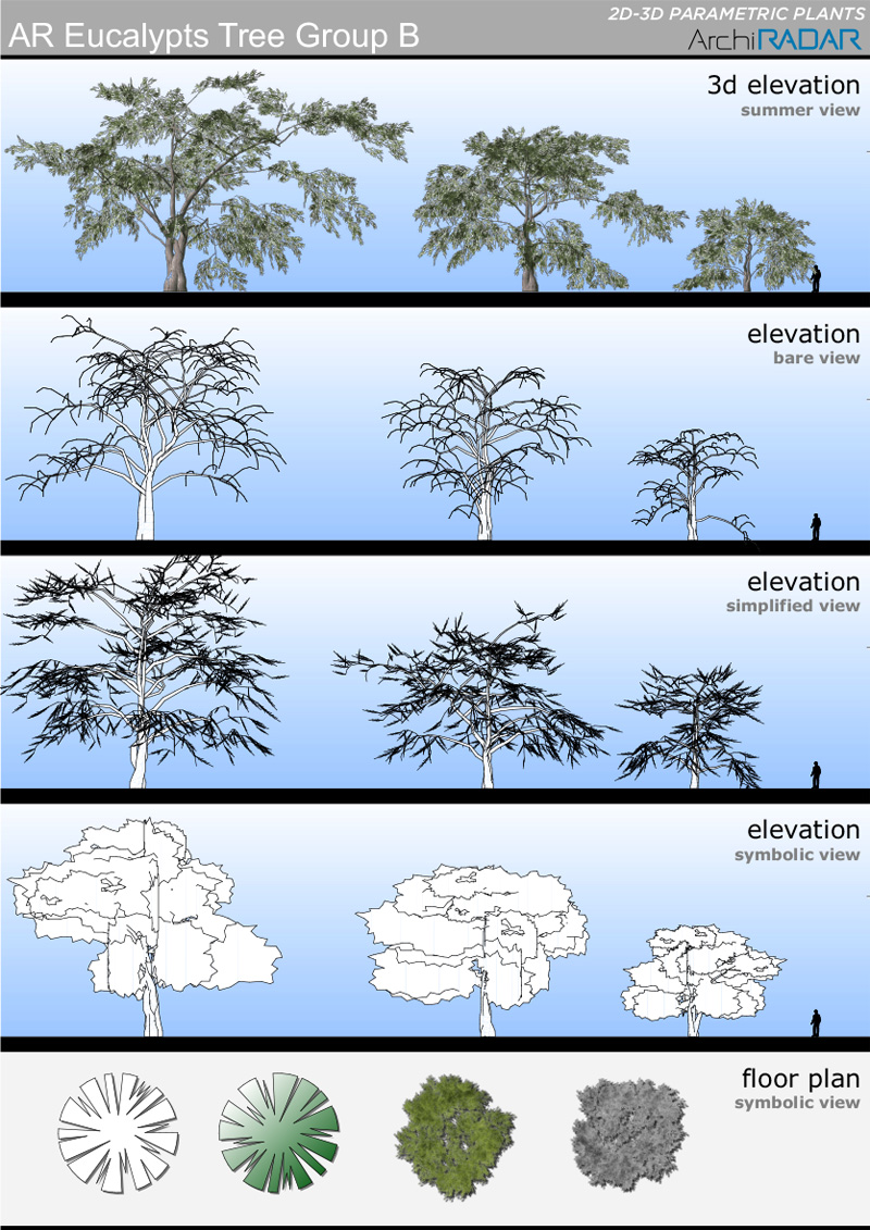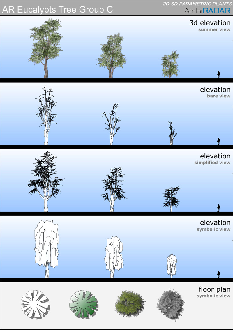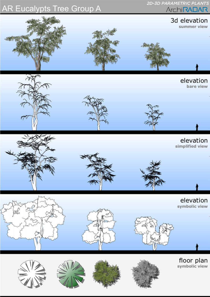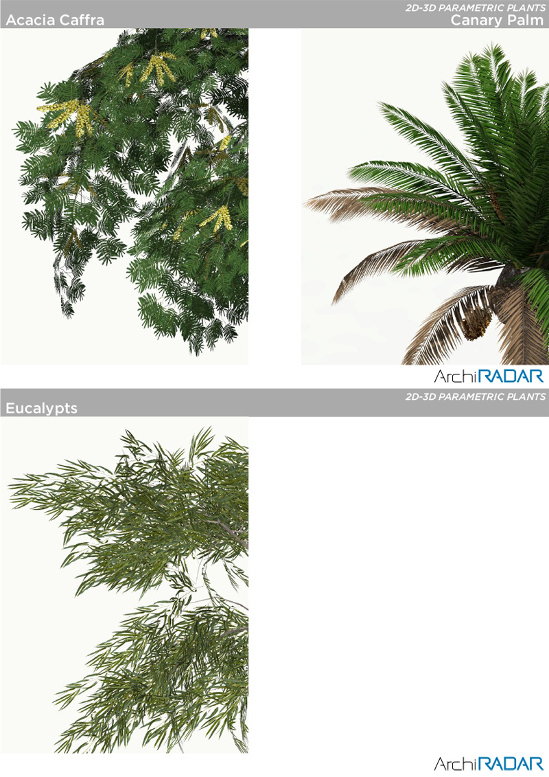 16 Modelli 3D di alberi diversi, compatibili con ArchiCAD 16 o superiore e ottimizzate per CineRender.