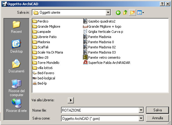 Adesso andiamo direttamente sul menu “Archivio – Oggetti GDL – Salva Modello 3D come…” e lo salviamo come oggetto con “Testo GDL editabile”