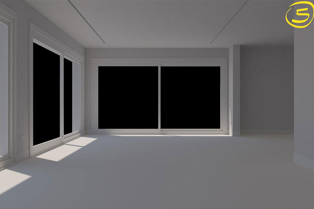 Dall'immagine 5 all'immagine 8 notate invece come la luce aumenta ma non grazie al Render Fisico (che è di supporto per altro). Abbiamo dovuto aumentare l'intensità a 200. Successivamente sono stati inseriti dei pannelli luminosi alle finestre per aumentare la luminosità nella scena.